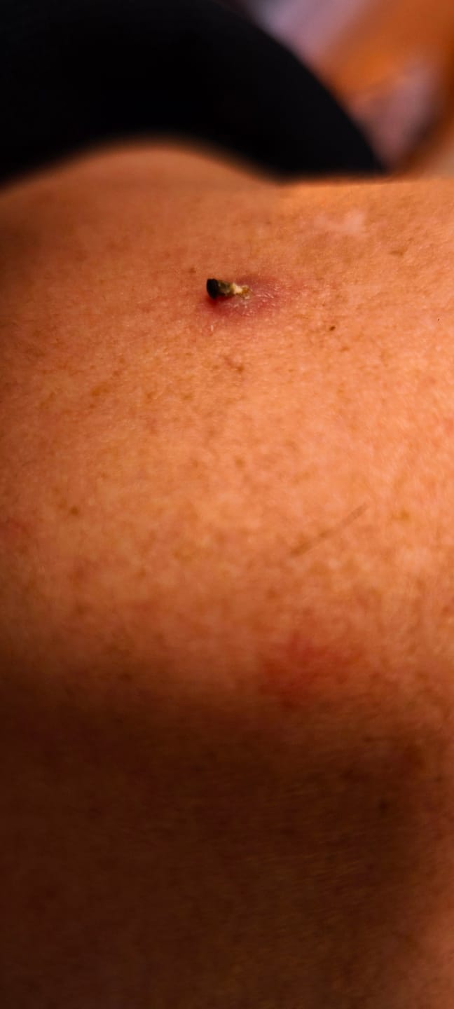 Giorni 2–3: Il fibroma diventa più scuro e si secca – è del tutto normale.